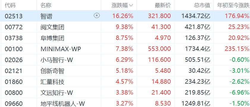 港股异动丨AI应用股集体走强,MINIMAX涨超7%