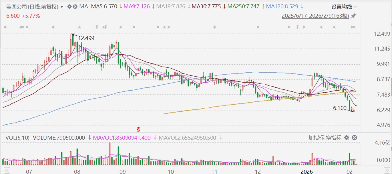 美图公司(1357.HK)高开5.77%,报6.6港元。消息面上,公司昨晚发布公告,预期于截至2025年12月底止年度,按非国际财务报告准则,集团的经调整净利润较2024年可能实现60%-66%的同比增长。