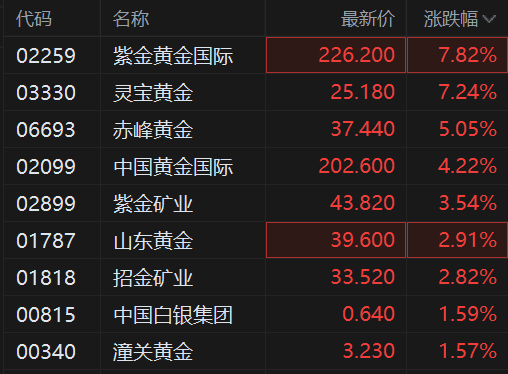 港股异动丨黄金股继续反弹 灵宝黄金涨超8%录得3连升 亚盘金价上涨