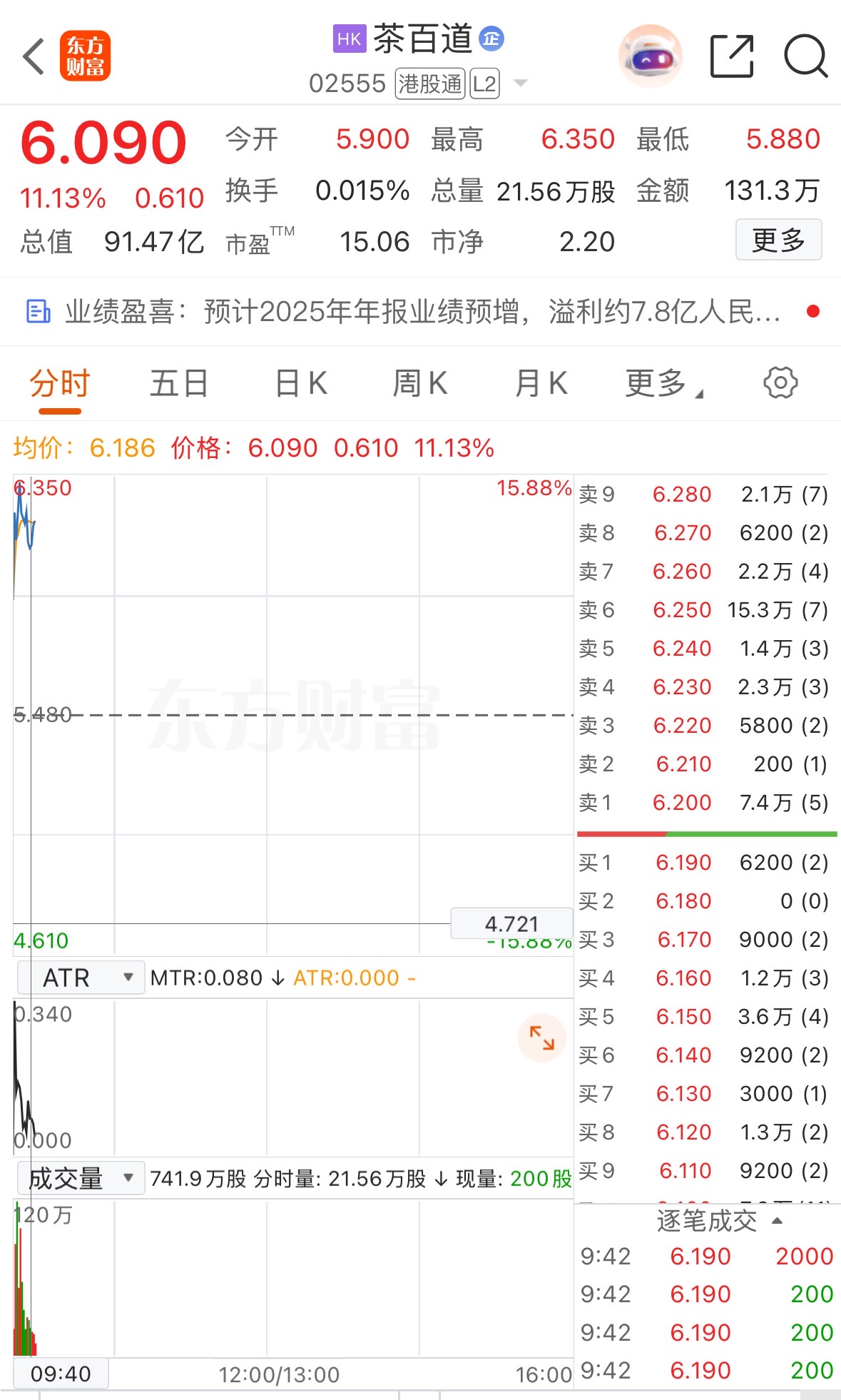港股异动 | 茶百道发布盈利预喜公告 盘中一度涨超15%
