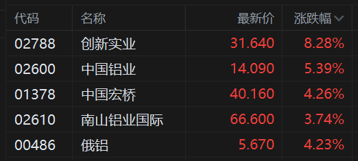 港股异动丨铝业股走高 中国宏桥逼近历史高位 供应告急铝价有望创历史新高
