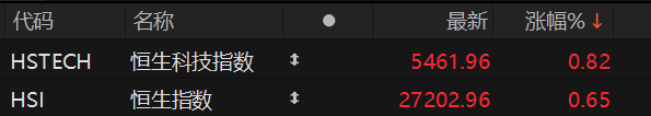 恒生指数高开0.65% 恒生科技指数涨0.82%
