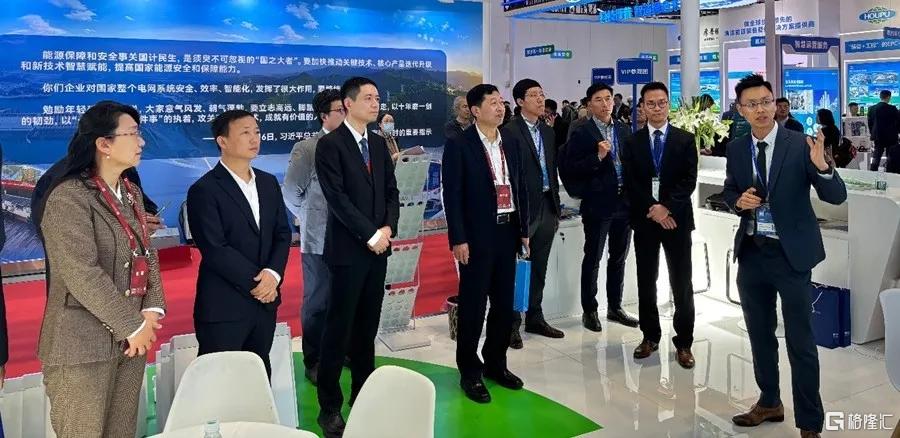国家能源局能源节约和科技装备司副司长边广琦(中)等官员参观香港展区,听取导览。