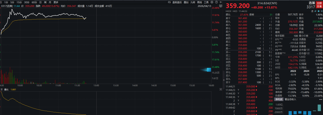 港股通标的股中,迅策大涨,盘中涨幅超过23%。