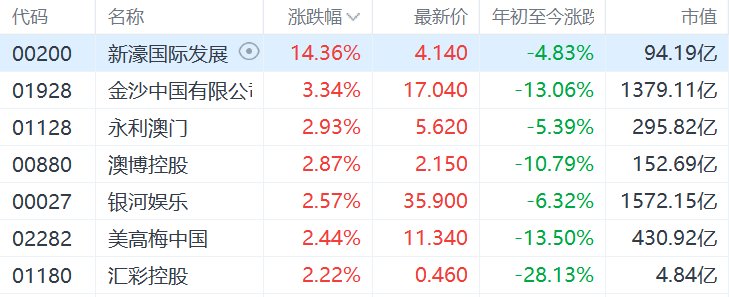 港股异动丨濠赌股全线上涨 澳门3月博彩收入超预期