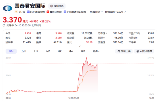 数字货币概念股午后集体大涨 国泰君安国际涨超39%