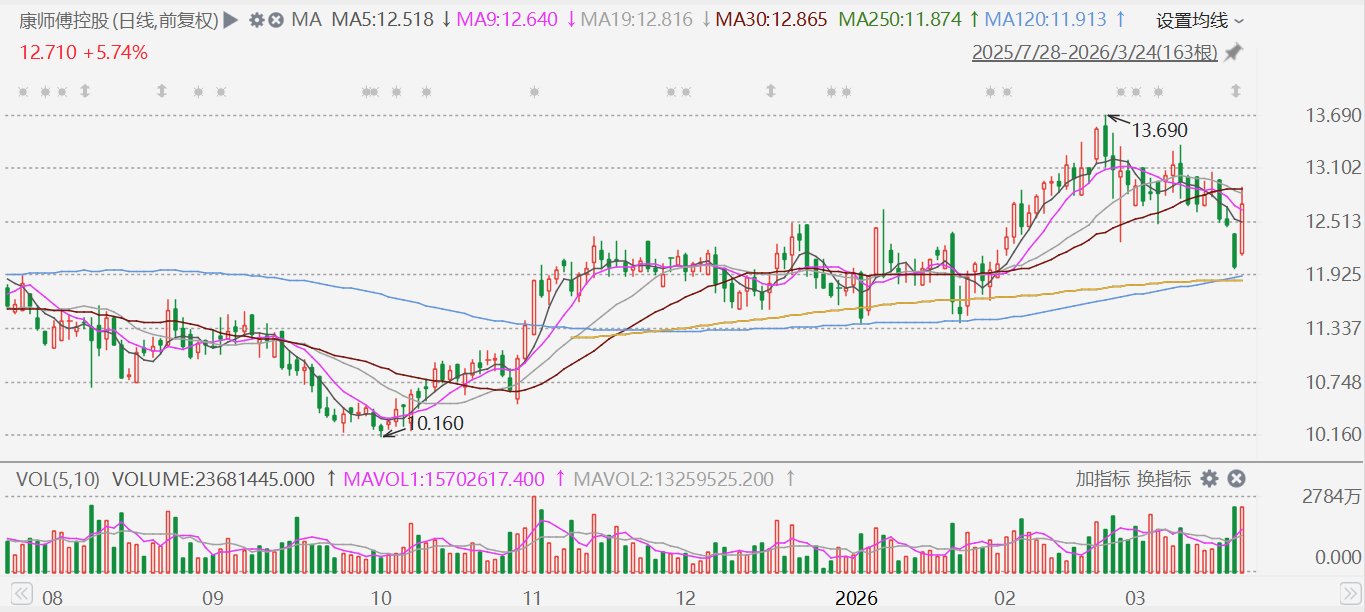 港股异动丨康师傅涨超7%,2025年溢利同比增20.52%