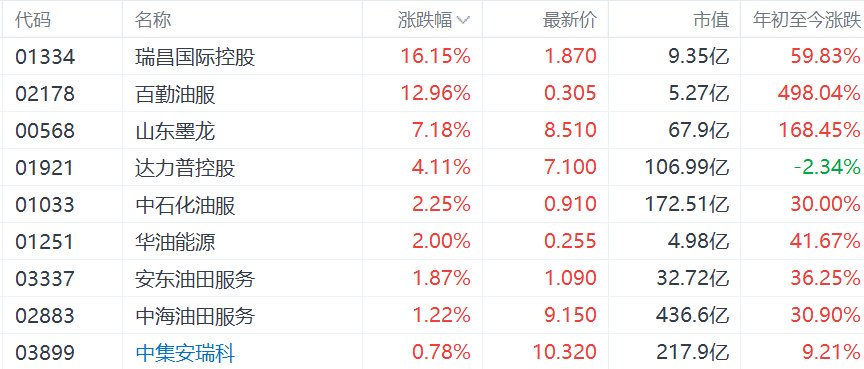 港股异动丨特朗普威胁打击伊朗能源设施,油气设备与服务股集体大涨,百勤油服涨近13%,山东墨龙涨超7%