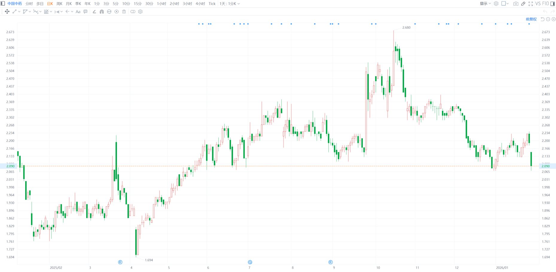 中国中药的股价将在未来30天下跌,发生此概率料介乎70%至80%。大摩预计股价出现变动是由盈警所致,该公司预计2025年度将录得亏损,属2013年以来首见。该行相信,面对市场规模萎缩的困境,公司未透露透过内部资源拓展或并购开拓新市场的具体规划。因此,市场目前对公司2026年业绩的能见度偏低,预期股价仍有进一步下行空间。(格隆汇)