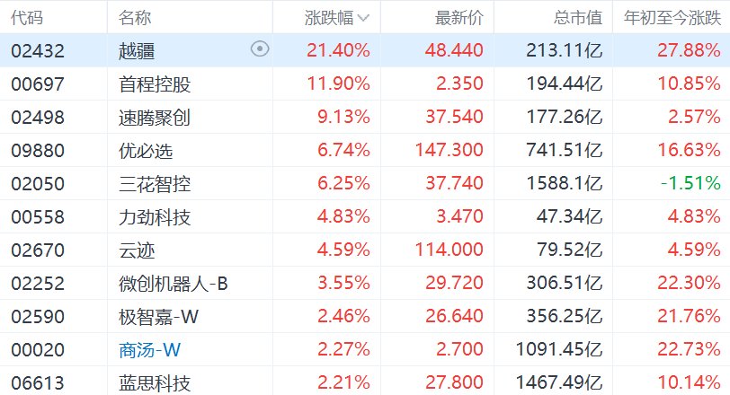 港股机器人概念股集体大涨,越疆涨超21%