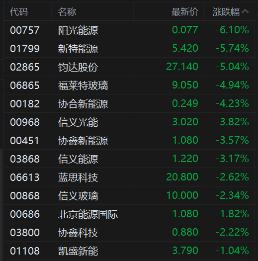 港股异动丨光伏股集体下跌 新特能源跌5.7% 光伏出口退税4月1日起取消