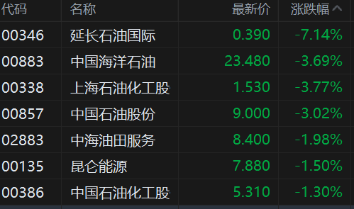 港股异动丨石油股继续走低 美伊现谈判迹象 国际油价大跌4%