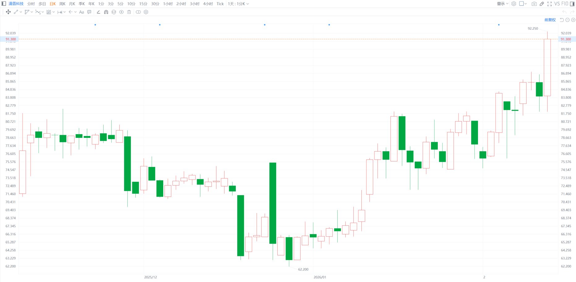 滴普科技(1384.HK)午后继续拉升,一度大涨9.89%至92.25港元,股价创去年11月10日以来逾3个月新高,市值重回300亿港元上方。该股于去年10月28日登陆港交所,迄今约3个半月时间,现价较IPO价格(26.66港元)已累涨2.46倍。