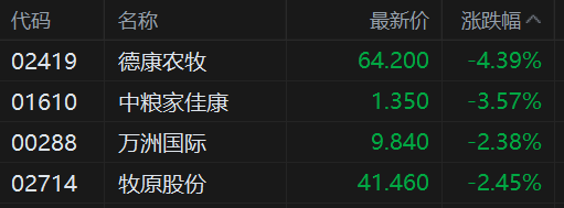 港股异动丨猪肉概念股走低 中粮家佳康4连跌 饲料集体涨价,猪粮比破4