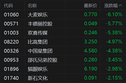 猫眼娱乐跌3%,三者均刷新阶段新低,
