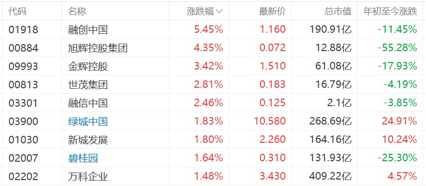 港股内房股普涨