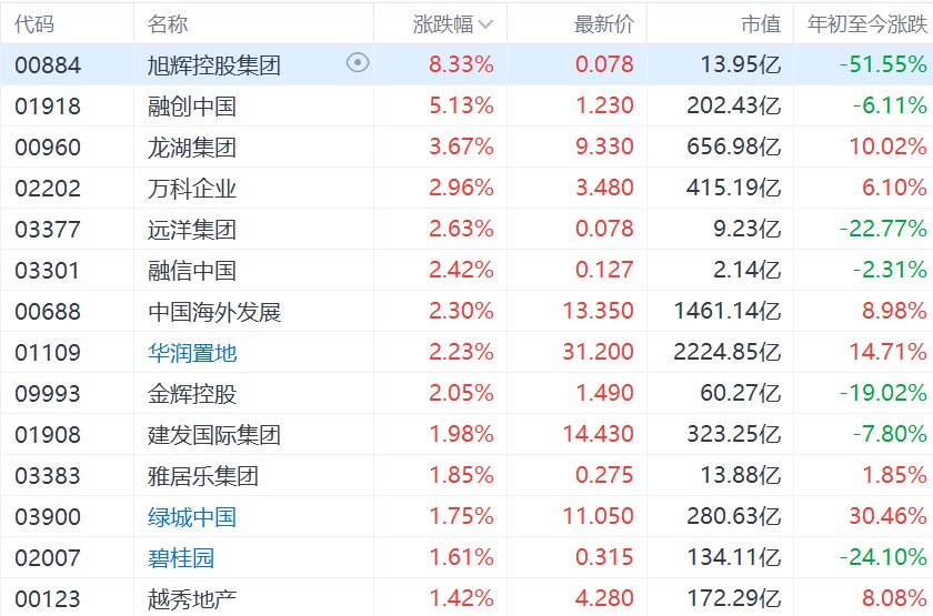 格隆汇3月17日|港股市场内房股集体走强,其中,旭辉控股涨超8%,