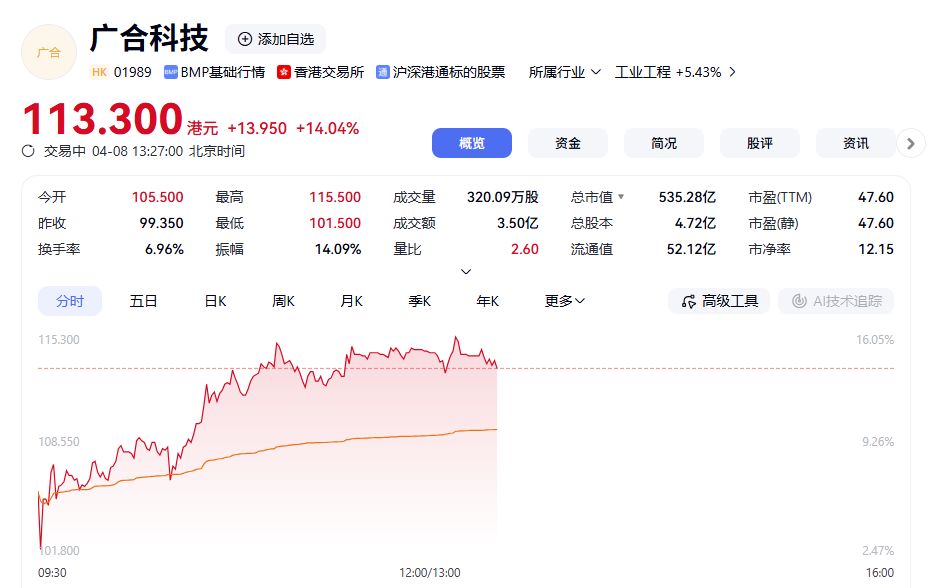 港股异动 | PCB需求旺盛 广合科技H股涨超14%