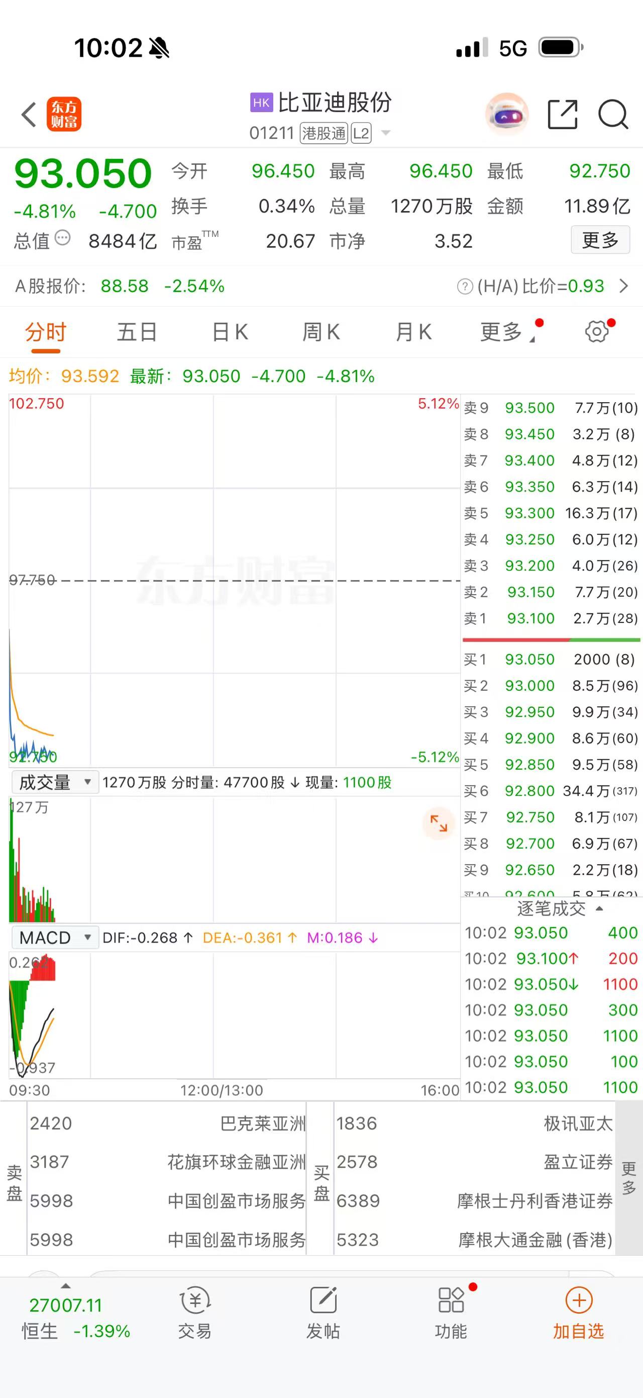 港股异动 | 港股汽车股集体下挫 比亚迪股份一度跌超5%