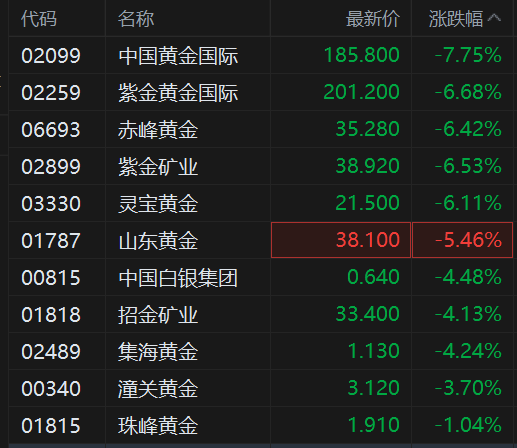 港股异动丨黄金股集体走低 金银价格再度回调 白银暴跌11%