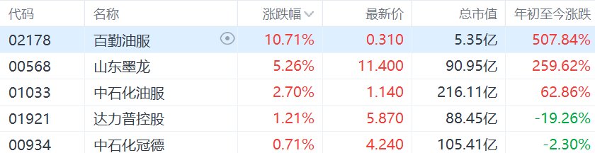 港股异动丨油气设备与服务股高开,百勤油服涨超10%,山东墨龙涨超5%