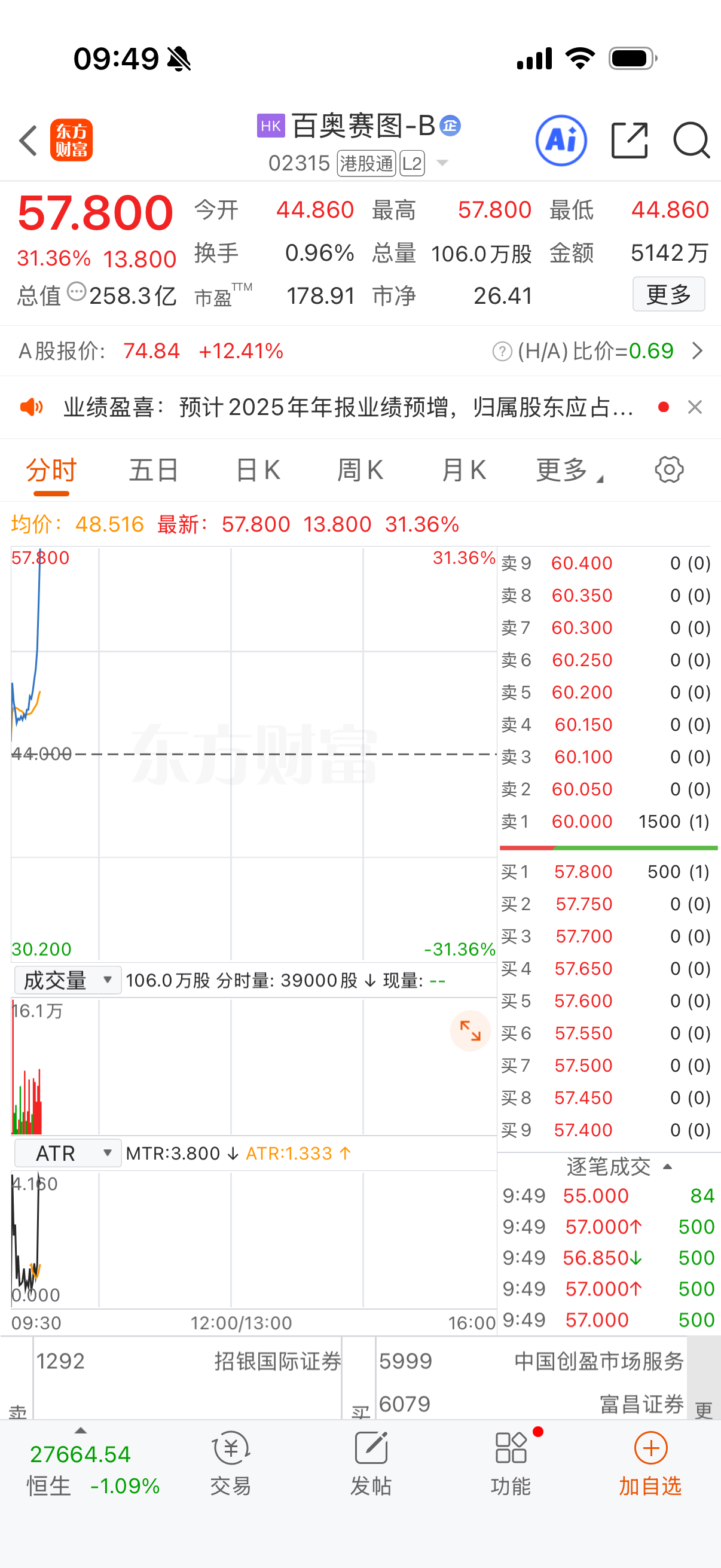 港股异动 | 百奥赛图-B涨超40% 2025年净利润同比预增384.26%到443.88%