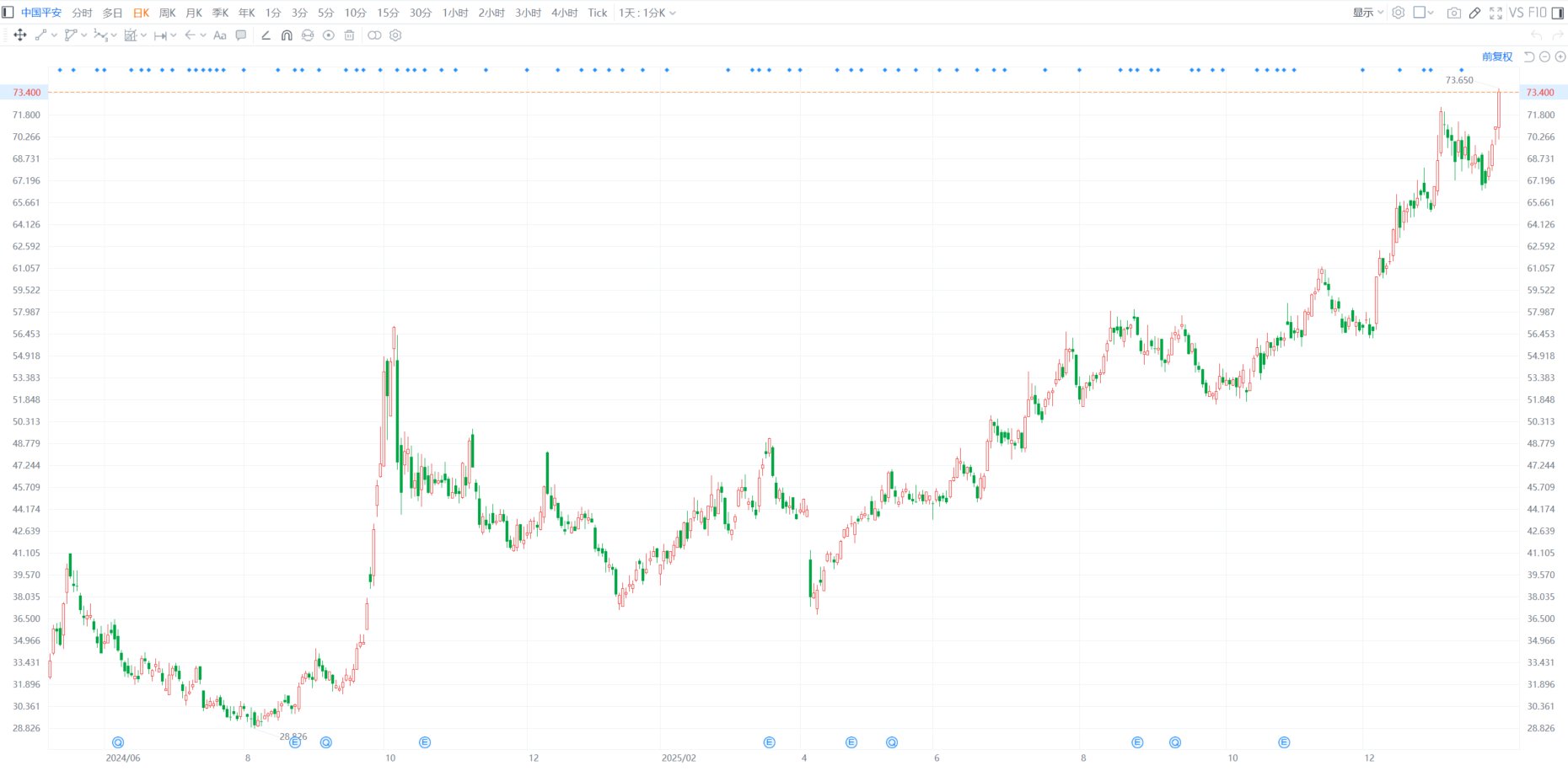 格隆汇1月29日|入选了格隆汇2026年“下注中国”十大核心资产名单的中国平安今日AH股齐升,中国平安A股涨4.32%,最高触及67.55元;H股涨3.81%,最高触及73.65港元,股价创2021年5月以来新高,市值重回1.33万亿港元上方。