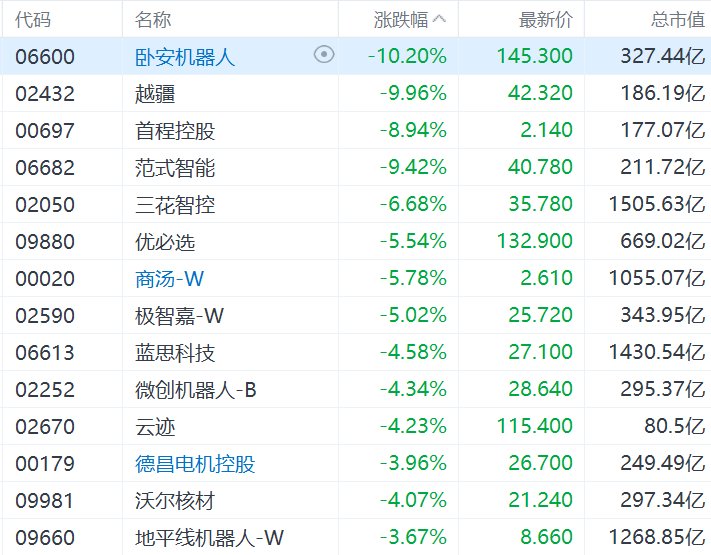港股异动丨租赁价格大幅回落!机器人概念股集体回调,越疆跌近10%
