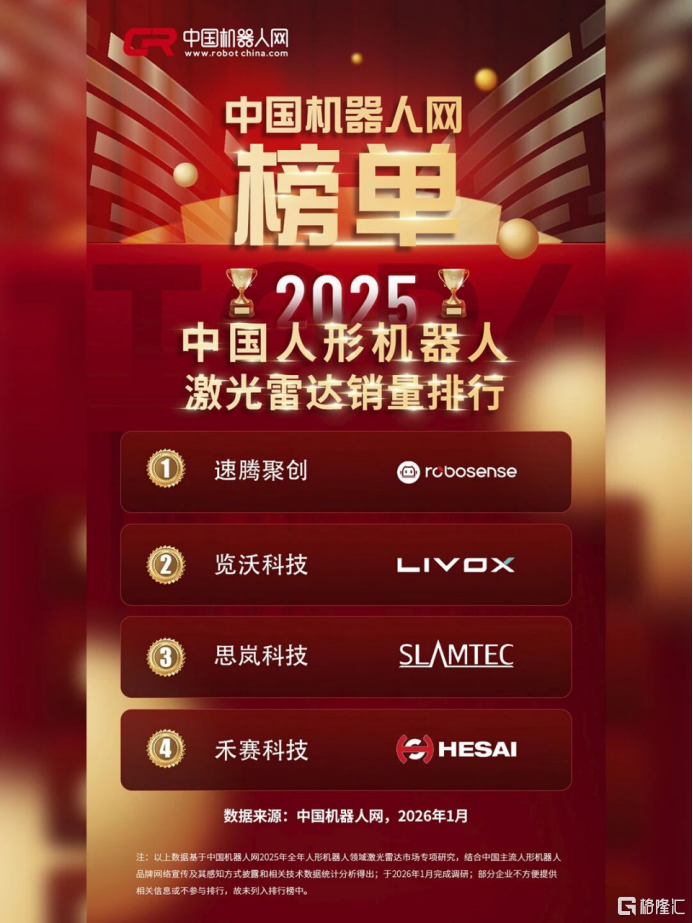 《2025年中国人形机器人激光雷达销量排行榜》出炉,速腾聚创第一