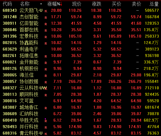 算力概念盘中走势活跃,截至收盘,云天励飞20%涨停,杰创智能涨近18%,宏景科技涨超10%,利通电子、拓维信息等亦涨停。