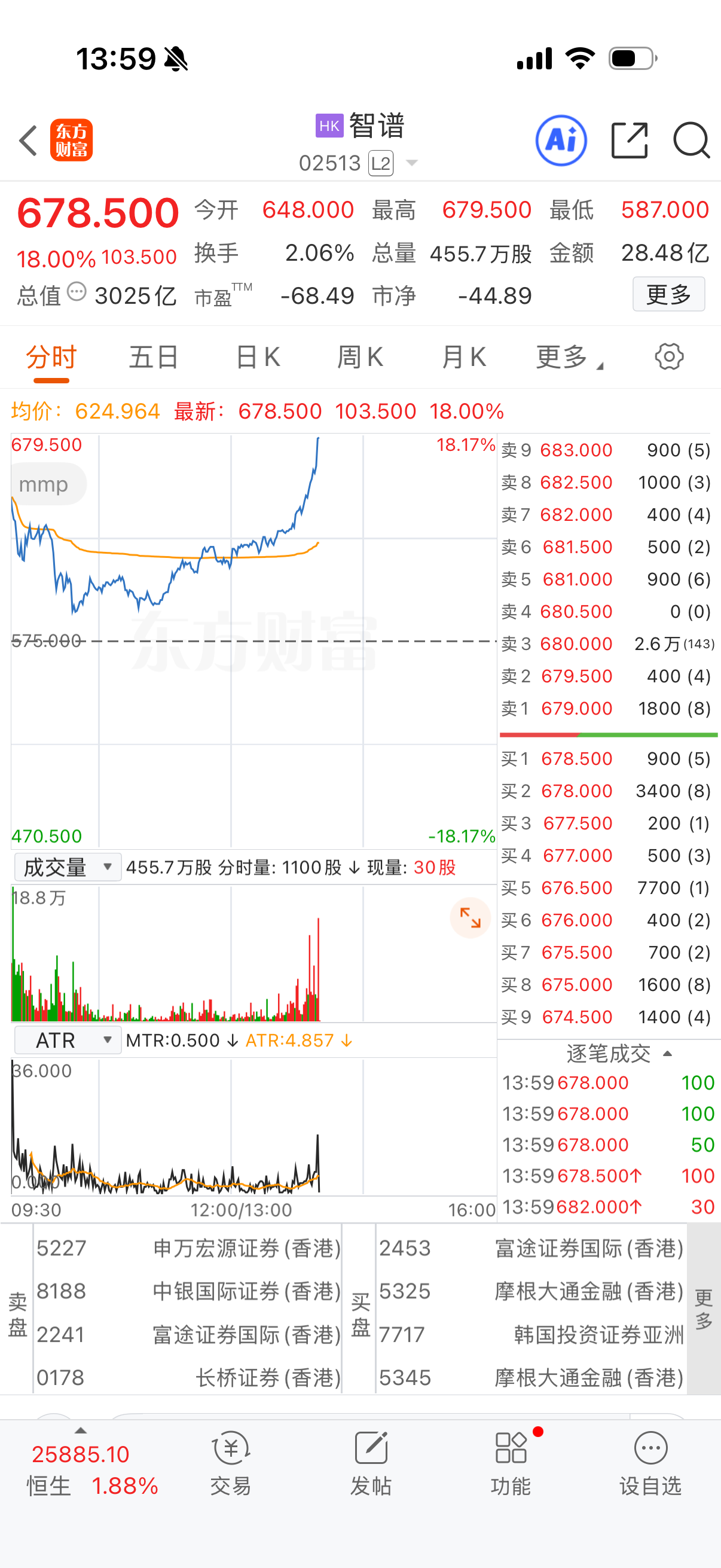 上证报中国证券网讯3月10日,智谱午后快速拉升,一度涨超18%。截至13时59分,智谱涨18%,报678.50港元/股。