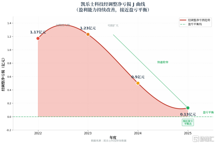 从可量化的运营数据与财务数据来看,凯乐士科技似乎展现出具备高度可见性的未来营收图谱,数据也勾勒出一条正在穿越盈亏平衡点的J型增长曲线。