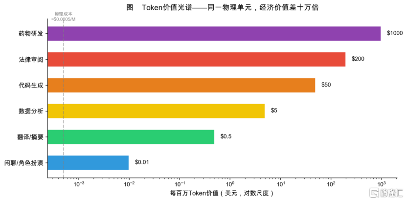 在Token的价值光谱中,不到5%的高价值消耗Token,竟创造了超过八成的可度量产业价值。Token的价值分层极为显著,Token的价值从不取决于生产成本,而完全取决于它所应用的场景与创造的实际经济价值。2022-2026年间,AI Token的单价下降了99.9%,用于日常闲聊时的Token价格仅为每百万个0.01美元。然而,同样的一枚Token,当其用于代码编写时价格可达每百万200美元,用于法律文档审阅等高价值任务时价格更是高达每百万1000美元,价值的差距可达惊人的十万倍。据悉,迅策垂类Token的调用价格已达到10-100美金/百万Token,是Anthropic的十倍以上,并根据专业的使用场景在持续增长。