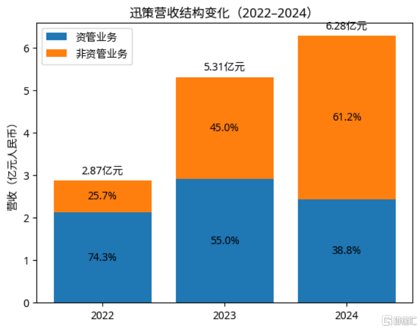 在完成金融行业的技术验证后,迅策开始向更多行业扩张:金融服务(除资管外)、城市管理、制造业管理、电信及其他行业,非资产管理业务收入占比从2022年的26%迅猛攀升至2024年的61%,已成为收入主力。