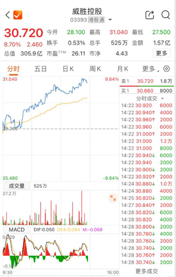 港股异动|股价创新高 威胜控股盘中涨超8%