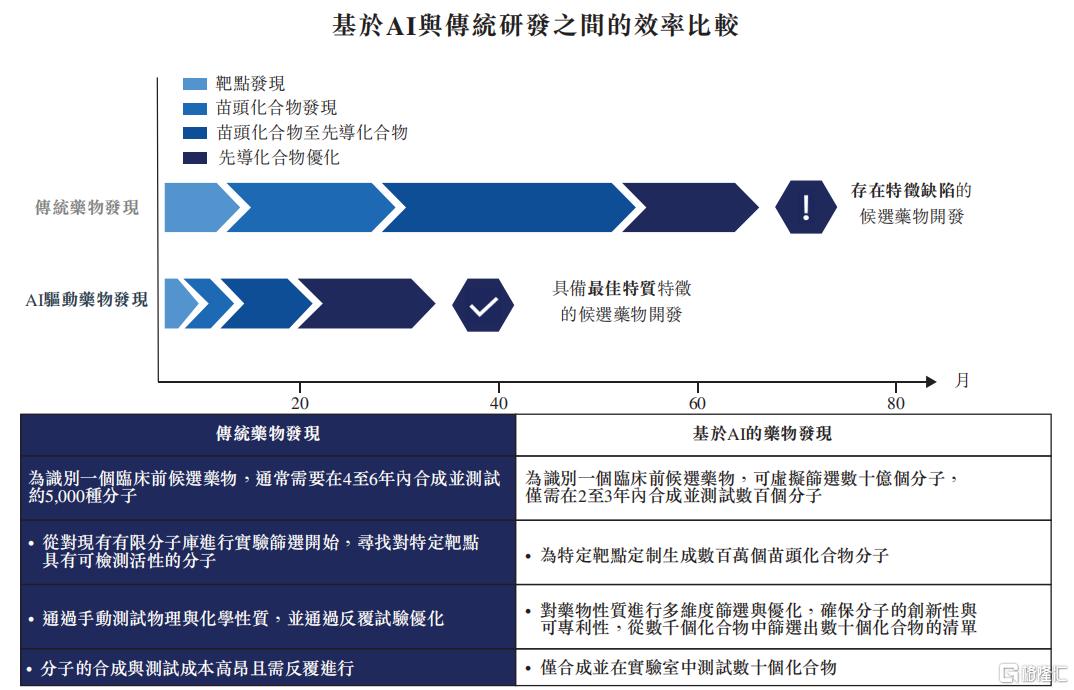基于AI与传统研发之间的效率比较,来源:英矽智能招股书