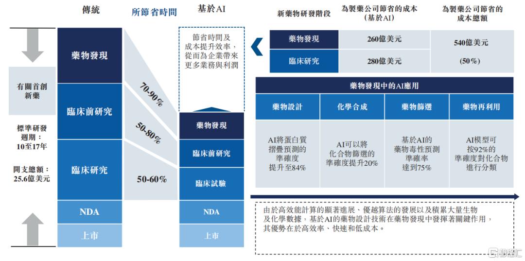 有研究指出,在首创新药的药物发现中应用AI,可在临床前及临床阶段使时间与成本下降多达50%。这使AI成为制药公司提升效率及实现更高投资回报的重要工具。