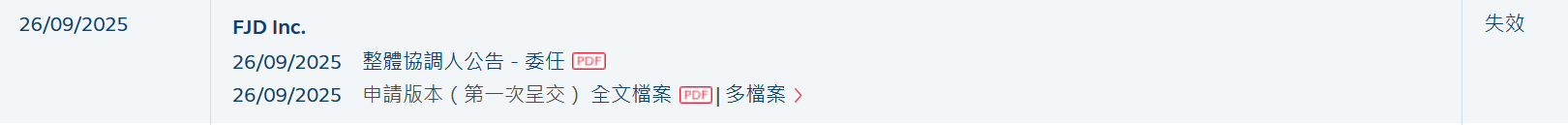 FJD Inc.(简称“丰疆智能”)于2025年9月26日所递交的港股招股书满6个月,于2026年3月26日失效,递表时摩根士丹利和中金公司为联席保荐人。