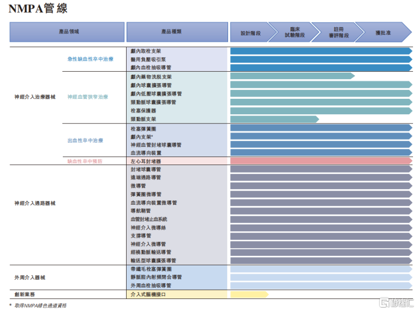 值得关注的是,目前公司自膨式颅内药物洗脱支架已完成对照临床试验,注册申请已获NMPA受理,且根据公开信息,全球尚无同类产品获批,研发进度领先。