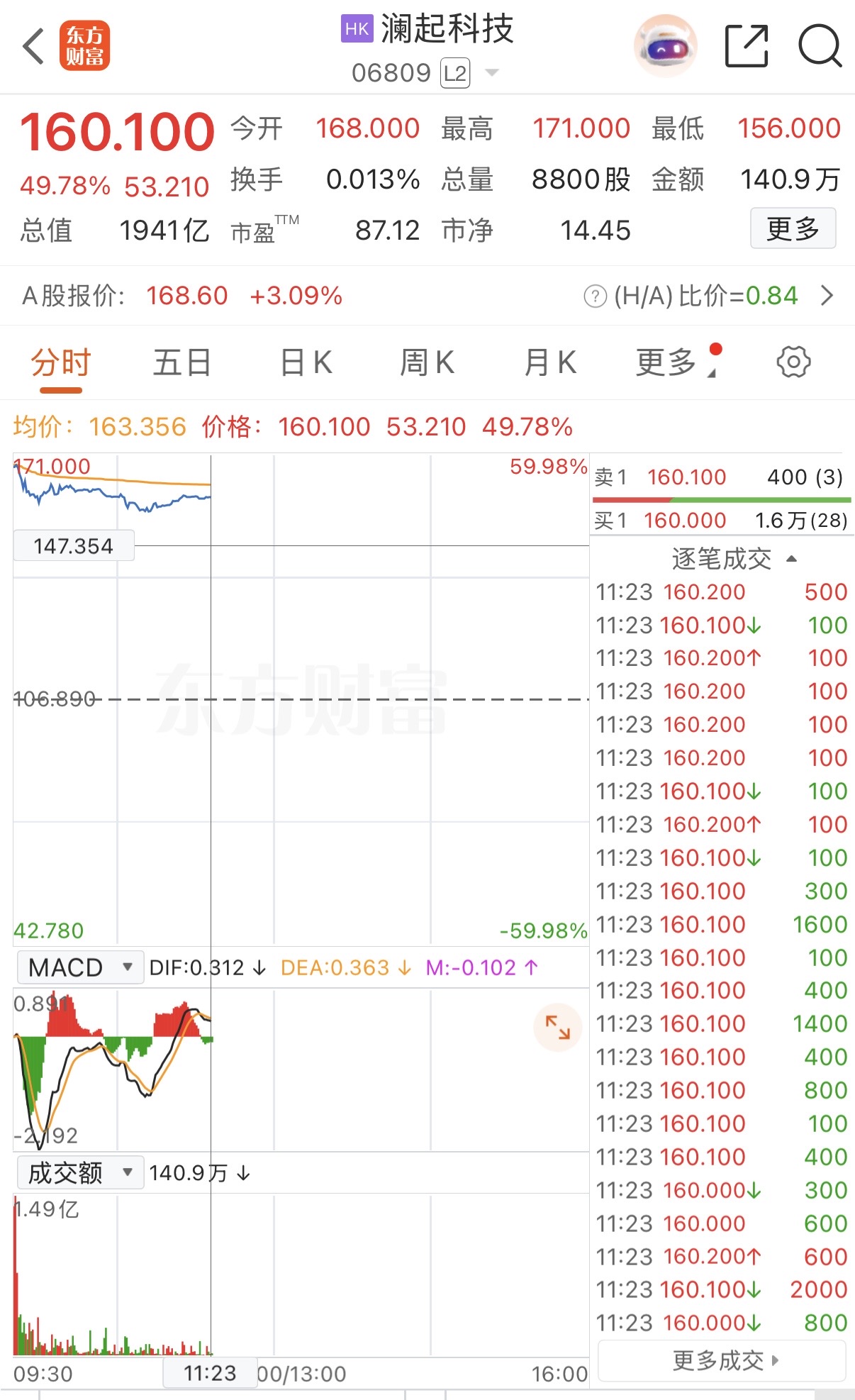 港股异动 | 澜起科技实现“A+H”上市 H股一度涨近60%