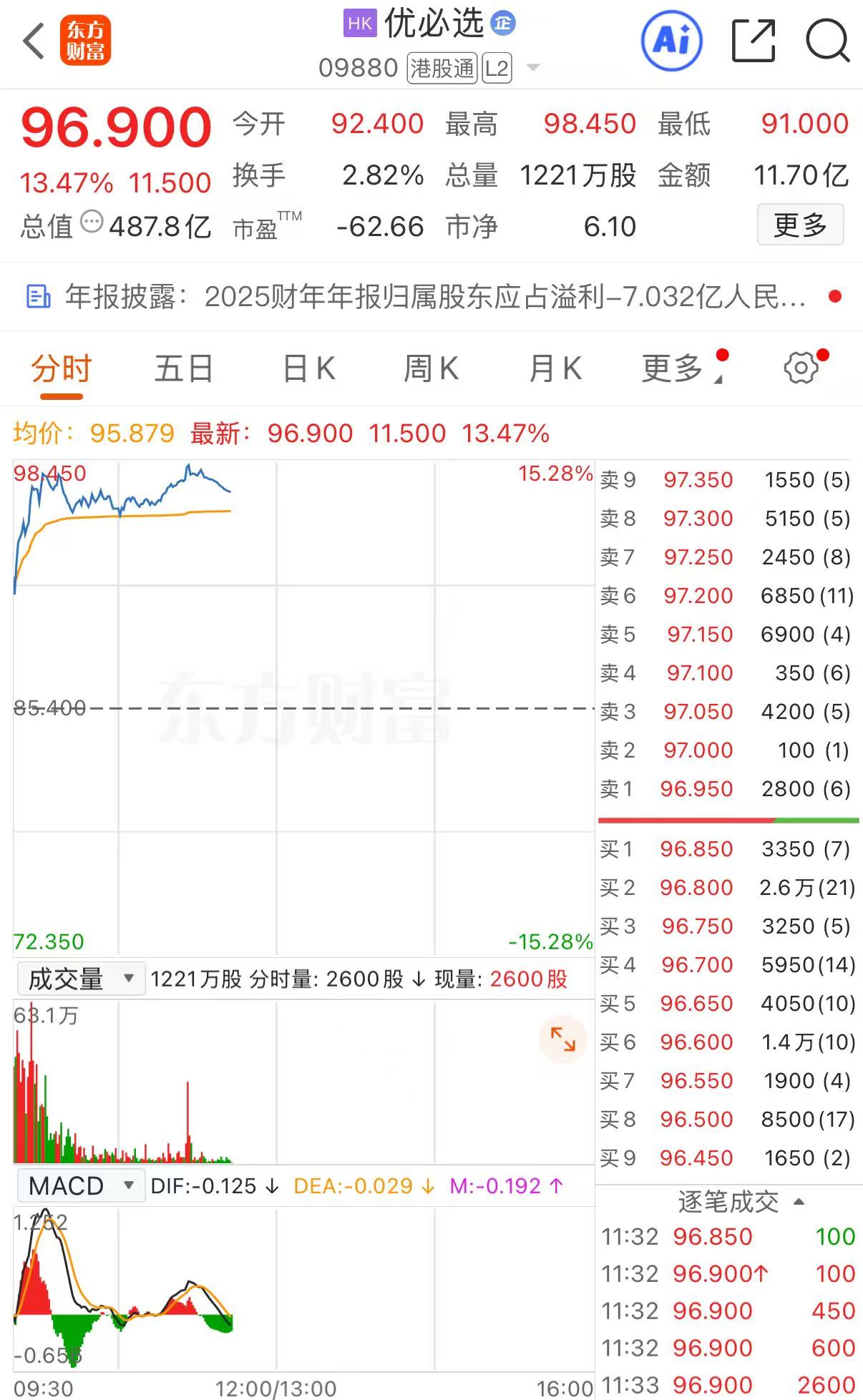 上证报中国证券网讯4月1日,优必选高开高走,盘中一度涨超15%。截至11时33分,该股涨13.47%,报96.9港元/股。