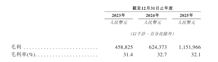 2023年度、2024年度及2025年度,公司毛利率分别为31.4%、32.7%及32.1%。