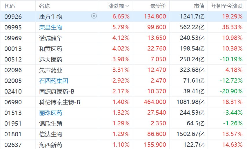 港股创新药概念股多数上涨,康方生物涨超6%