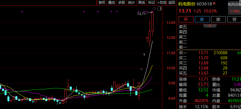 电网设备板块直线拉升,杭电股份、积成电子双双涨停,亿能电力、通光线缆、三变科技、汇金通、双杰电气等跟涨。